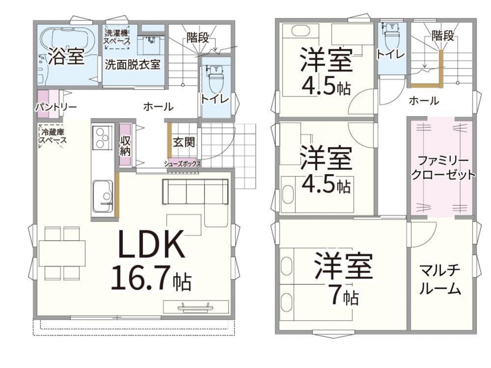 ・トイレ:リクシル製、各階完備