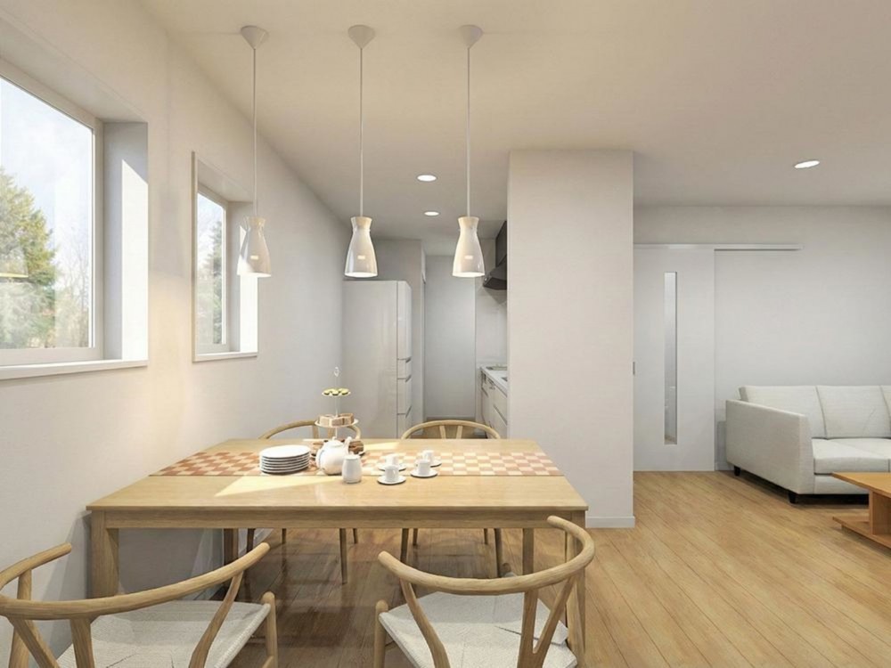 ・回遊できるキッチン動線、L字型LDK